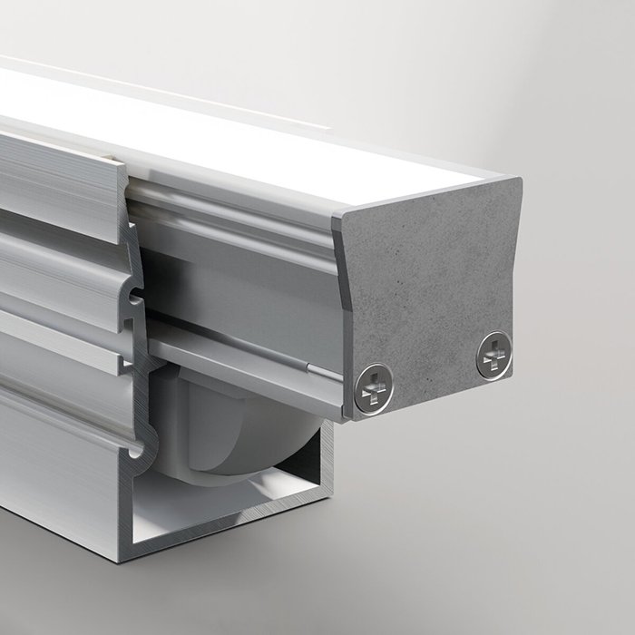 - Záslepky sa na LED profil nasadzujú zo strany. LED difúzor sa do profilu vtlačí z čelnej strany.