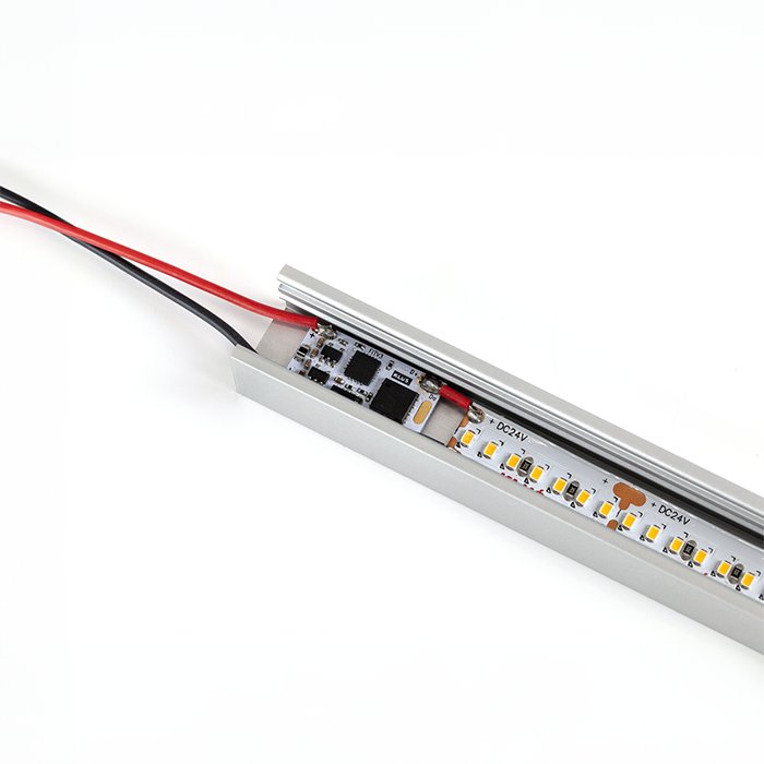 Bezdotykový stmievač LED pásky do profilu alebo lišty KLUŚ UNI je jednoduchým spôsobom pre ovládanie osvetlenia. Bezdotykový mikro stmievač funguje na princípe mávnutia pred senzorom. Gesto zaznamenané snímačom následne spôsobí zapnutie/vypnutie/úpravu intenzity osvetlenia. Miniatúrne rozmery stmievača ho predurčujú na montáž do LED lišty alebo profilu kde zaberie len minimum miesta. Mikro stmievač do LED profilu ponúka možnosti zapojenia: