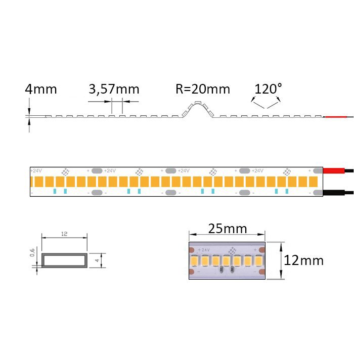 Biely 24V LED pásik IP65 Lux Miners | 10W | 280LED | CRI90+