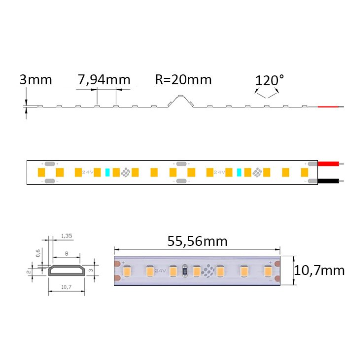 | svetelný tok: | 466 lm/m | 606 lm/m | 662 lm/m | 657 lm/m | 686 lm/m | 647 lm/m |