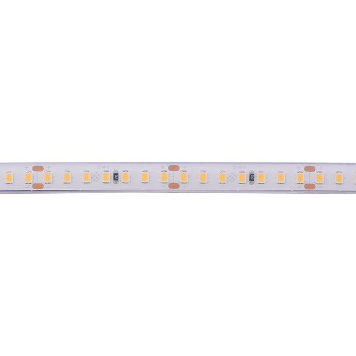 Vonkajší LED pásik 24V spĺňa triedu krytia IP68. Je osadený značkovými čipmi Sanan v počte 168 LED /1m s vernosťou podania farieb CRI90 + (Color Rendering Index). Efektivitu a svietivosť zaisťuje vysoký svetelný tok s rozsahom farebných teplôt: