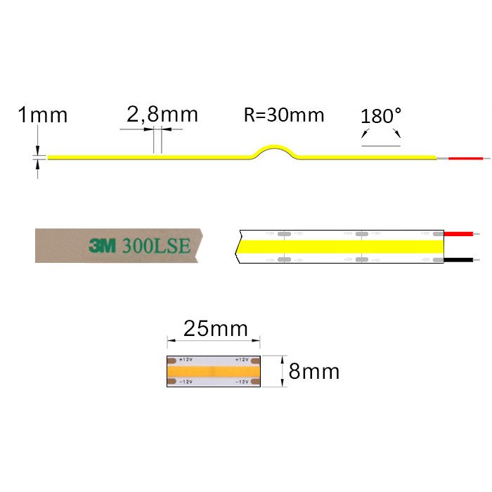 Doplňujúce technické vlastnosti pre biely COB 12V LED pásik COB-SC12320