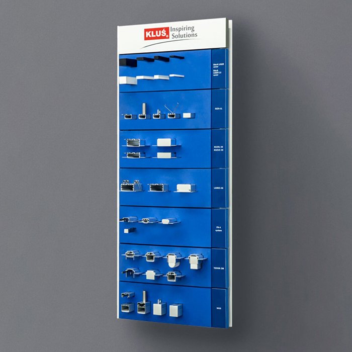Expozičná pena KLUŚ 70494 umožňuje jednoduchú, atraktívnu a efektívnu prezentáciu produktu GIZA-DUO-LL a súvisiaceho príslušenstva. Expozičná pena pomáha zákazníkom v lepšej produktovej orientácii a názornej demonštrácii použitia vybraného hliníkového profilu a príslušenstva.