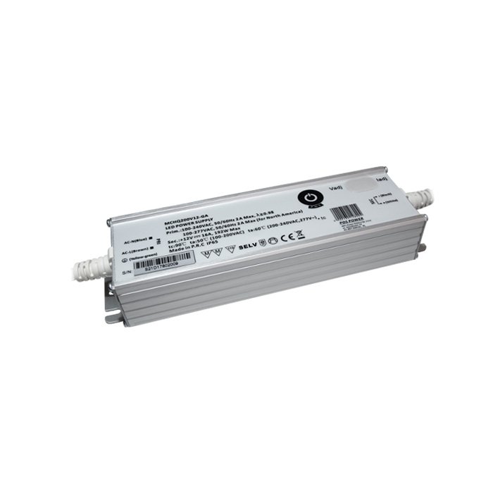 IP65 LED zdroj 12V s produktovým označením MCHQ200V12-GA je produktom rešpektovaného európskeho výrobcu POS POWER. Tento zdroj konštantného napätia (CV - Constant voltage) ponúka moderné funkcie a kvalitnú elektroniku vrátane voliteľnej možnosti nastavenia výstupného napätia a prúdu potenciometrami. Tie sú ukryté pod gumovým tesnením z pohľadovej strany. Vďaka popísaným vlastnostiam odporúčame tento produkt pre napájanie elektroniky alebo ako napájací zdroj pre LED pásky a svietiace ohybné pásky.