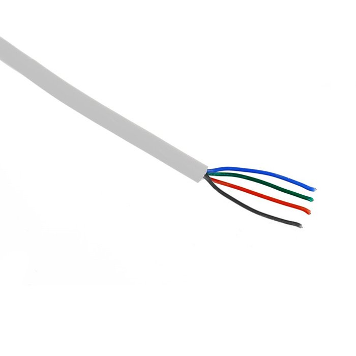 RGB kábel pre LED pásiky 4PIN je špeciálny typ plochého kábla, ktorý sa používa k prenosu napätia DC 12V alebo 24V pre RGB LED pásiky. Kábel disponuje farebne označenými vodičmi. Tento faktor zjednodušuje orientáciu vo vedení káblov a eliminuje možnosť vzniku chyby v zapojení.