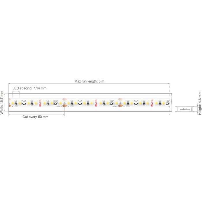 LED pásik KLUŚ KWP-14KCR-0960-24 9,6W/m 140LED/m CRI95+ IP65 KLIK