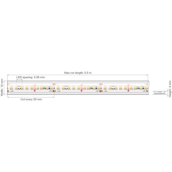 LED pásik KLUŚ KWP-VHE-0480-24 4,8W/m 180LED/m CRI90+ IP65