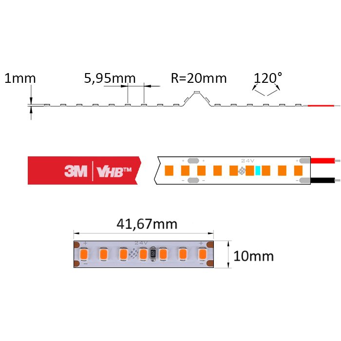 LED pásik oranžový 24V Lux Miners | 10W | 168LED