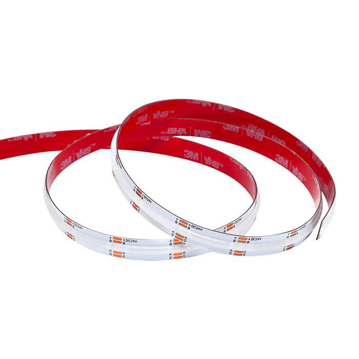 Na spodnej strane COB RGB LED pásika - COB-RGB24840 nájdete obojstrannú lepiacu pásku najvyššej rady 3M VHB. Tá zaistí vynikajúcu priľnavosť k hliníkovému povrchu, ktorý je typický pre LED profily. Použitie LED profilu pre inštaláciu LED pásika odporúčame ako jedinú a správnu možnosť.