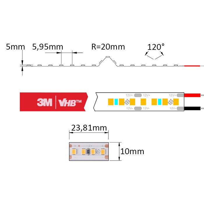 Na spodnej strane LED pásika - SC12168 nájdete obojstrannú lepiacu pásku najvyššej rady 3M VHB. Tá zaistí vynikajúcu priľnavosť k hliníkovému povrchu, ktorý je typický pre LED profily. Použitie LED profilu pre inštaláciu LED pásika odporúčame ako jedinú a správnu možnosť.