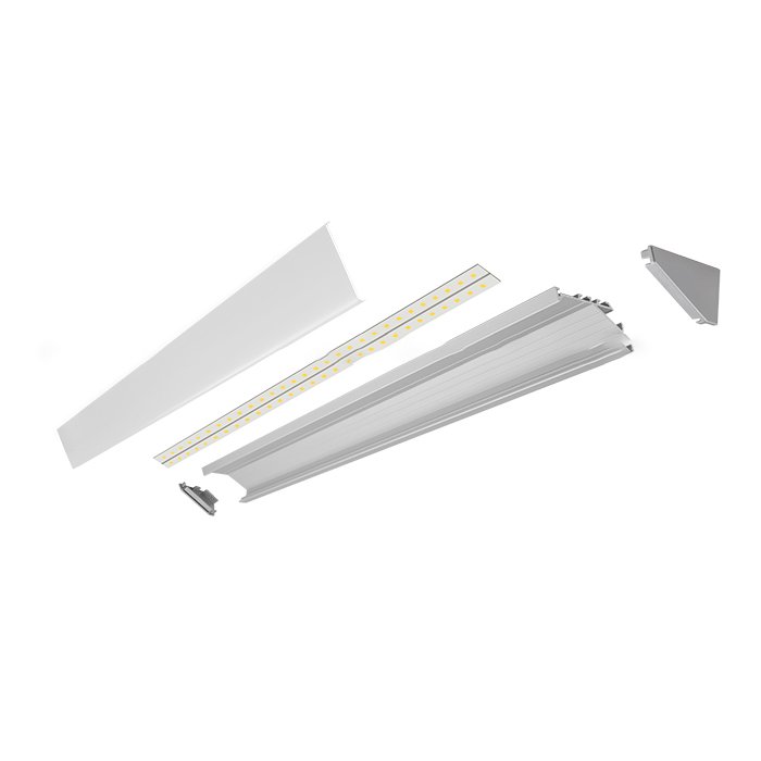 - Rohový LED profil je kompatibilný s viacerými difúzormi. Výber difúzora významne ovplyvní dizajn produktu.
