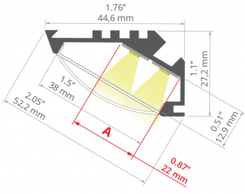 - Rozmery profilu pre 2x LED pásik o šírke max. 10mm