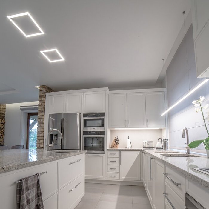 Profil na LED pásik do sadrokartónu KLUŚ KOZEL umožňuje osadenie až dvomi #tablink#led-pasky#LED pásikmi## s maximálnou šírkou 12mm. V závislosti od návrhu a tvaru svietidla v priestore slúži vstavaný LED profil do SDK pre účely hlavného alebo doplnkového osvetlenia. Ak hľadáte spôsob ako inštalovať LED pásik na strop, hliníkový profil KOZEL je ideálnou voľbou. A to ako z pohľadu chladenia LED pásika tak aj estetického vzhľadu.