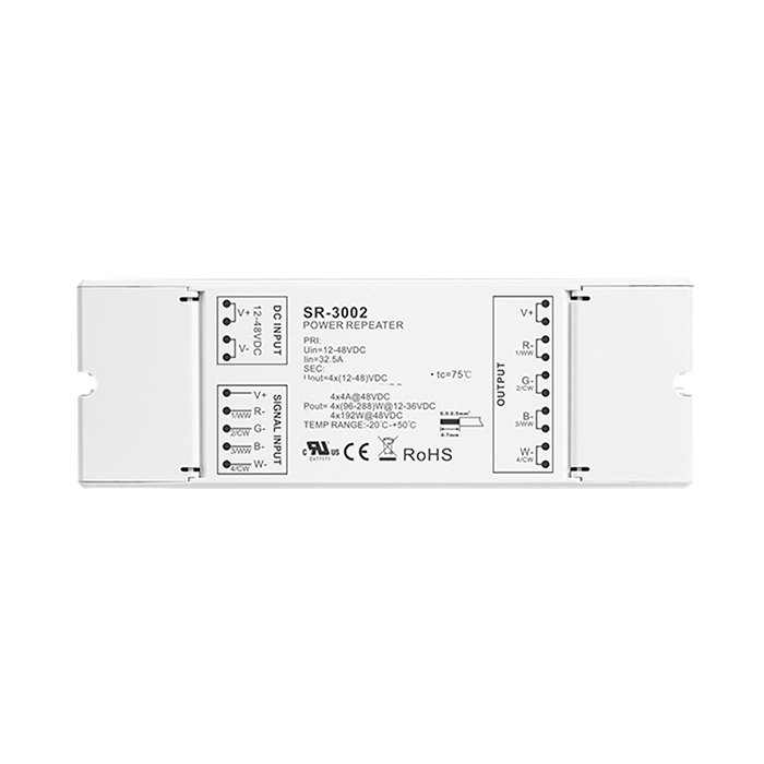 Zosilovač riadiaceho signálu pre LED pásiky a svietiace ohybné pásiky s označením SR-3002 je dôležitou elektronickou jednotkou najmä v rozsiahlych projektoch osvetlenia. Využíva sa v situáciách, keď potrebujete ovládať väčší príkon LED pásikov, než umožňuje kapacita jedného stmievača. Zosilovač LED signálu SR-3002 zaisťuje, že všetky pripojené pásiky reagujú jednotne na riadiaci signál stmievača, či už ide o zmenu intenzity svetla, farby alebo zapnutie a vypnutie osvetlenia.