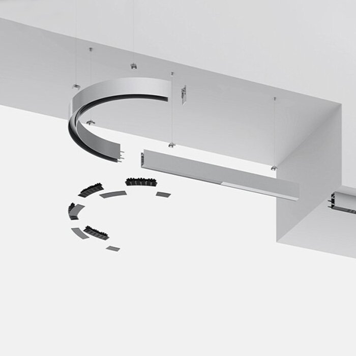 • Dĺžku svietidla - rovné moduly sú k dispozícii v rôznych dĺžkach, čo umožňuje vytvárať osvetlenie podľa požadovaných proporcií a veľkostí miestností. Tieto variabilné dĺžky je možné spájať, pričom zostáva zachovaná celistvosť dizajnu