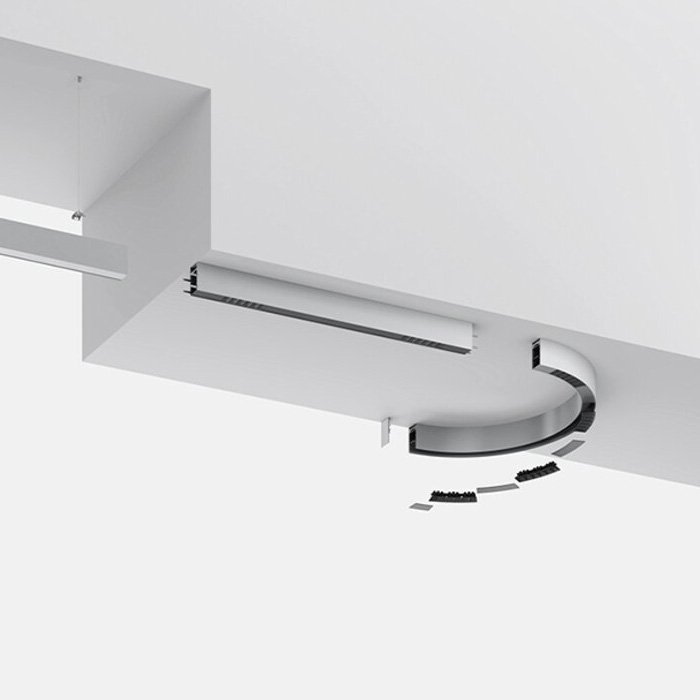 Oblúkové modul 1/4 s polomerom r=750mm systému osvetlenia SERPENT R-PLUS NT 1/4 prináša ešte väčšiu flexibilitu pri návrhu osvetlenia. Vďaka svojej variabilite umožňuje jednoduchú individualizáciu, ktorá sa dokonalo prispôsobuje špecifickým požiadavkám každého projektu. Tento modul ponúka nie len moderný dizajn, ale tiež rozšírené možnosti individuálnej konfigurácie, čo umožňuje dosiahnutie optimálneho nasvietenia pre akýkoľvek interiér či komerčný priestor.
