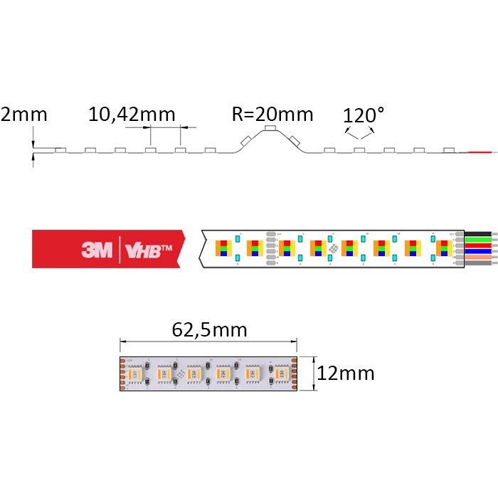 Na spodnej strane RGBWW LED pásika - RGBWW2496 nájdete obojstrannú lepiacu pásku najvyššej rady 3M VHB. Tá zaistí vynikajúcu priľnavosť k hliníkovému povrchu, ktorý je typický pre LED profily. Použitie LED profilu pre inštaláciu LED pásika odporúčame ako jedinú a správnu možnosť.