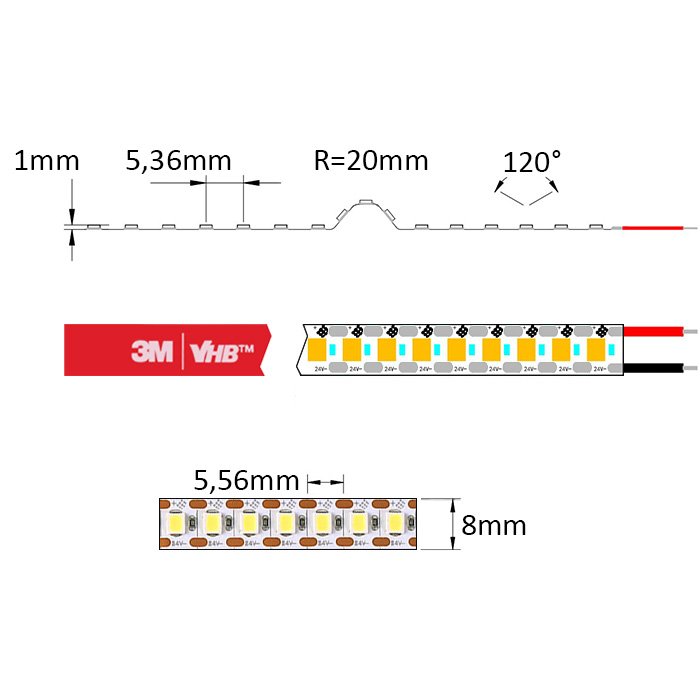 Na spodnej strane LED pásika - SC24180 nájdete obojstrannú lepiacu pásku najvyššej rady 3M VHB. Tá zaistí vynikajúcu priľnavosť k hliníkovému povrchu, ktorý je typický pre LED profily. Použitie LED profilu pre inštaláciu LED pásika odporúčame ako jedinú a správnu možnosť.