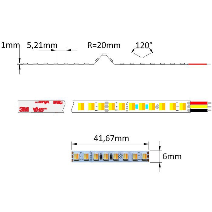 Na spodnej strane CCT LED pásika - CCT24192 nájdete obojstrannú lepiacu pásku najvyššej rady 3M VHB. Tá zaistí vynikajúcu priľnavosť k hliníkovému povrchu, ktorý je typický pre LED profily. Použitie LED profilu pre inštaláciu LED pásika odporúčame ako jedinú a správnu možnosť.