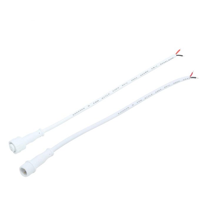 DC káblová spojka 2PIN s konektorom je špeciálna sada s dĺžkou 28cm. Slúži na napojenie LED pásikov k napájacím zdrojom, LED ovládačom alebo ďalšiemu príslušenstvu. Je možné ho využiť pre LED pásik jednej farby, môže sa pritom jednať o biele LED pásiky alebo farebné LED pásiky .Výhodou vodotesnej káblovej spojky 2PIN s konektorom je jednoduché opätovné rozpojenie / zapojenie do elektrického okruhu.