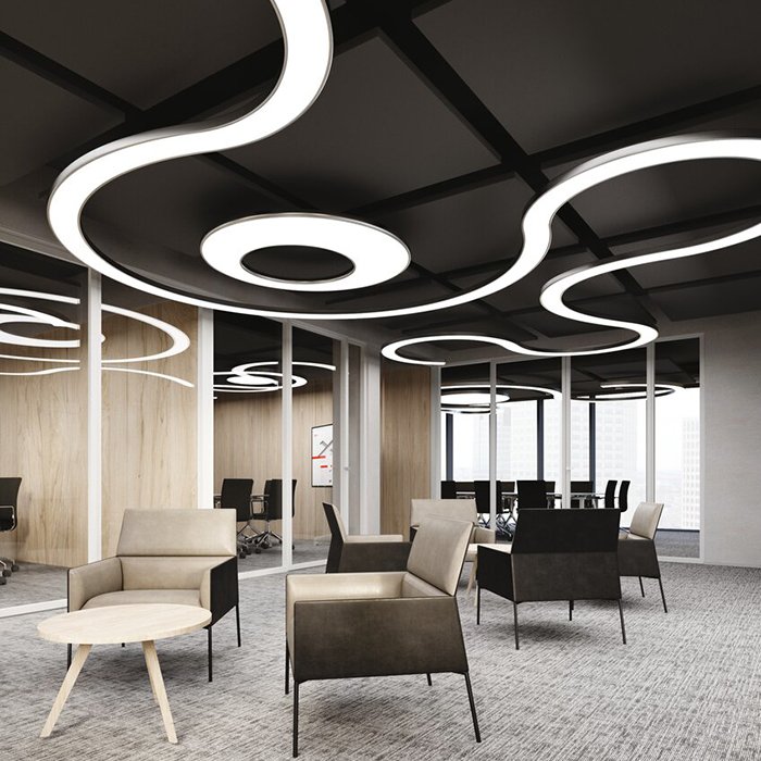 Flexibilné moduly umožňujú rýchle a jednoduché zostavenie závesných osvetľovacích systémov polygonálnych tvarov. Svietidlá si môžete sami navrhnúť v kompatibilných programoch pomocou priložených 2D a BIM 3D CAD súborov, ktoré zjednodušia vizualizáciu a plánovanie. Ak preferujete profesionálny prístup, môžete využiť služby spracovania vizualizácie LED osvetlenia KLUŚ. Naše projektové oddelenie si od vás vyžiada potrebné podklady a spracuje vizualizáciu vrátane podkladov pre prípadnú následnú výrobu svietidiel podľa vašich požiadavkov.
