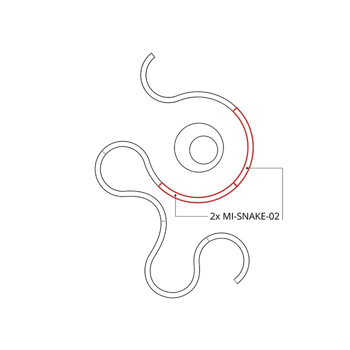 Oblúkové stropné LED svietidlo KLUŚ MI-SNAKE-02 je súčasťou unikátneho systému MIFOR. Inšpiráciu jeho špičkové modularity a variability v dĺžke, tvaru aj rozmiestnenia svetelných prvkov môžete načerpať v #tablink#videa#produktovom videu##. Tento systém je ideálny pre tvorbu polygonálnych zvesených stropných svietidiel, prispôsobených konkrétnym požiadavkám investora.