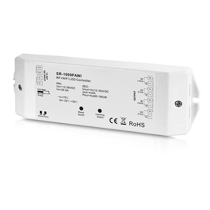 RF a WIFI stmievač pre CCT, RGB, RGBW LED pásiky SR-1009FAWI je navrhnutý tak, aby poskytoval pokročilé funkcie riadenia osvetlenia s ohľadom na kompatibilitu v rámci ekosystému RF-SUNRICHER. Umožňuje plynulé stmievanie, reguláciu farieb alebo chromatickosti a komforné diaľkové ovládanie, čo je kľúčové pre dosiahnutie požadovanej intenzity svetla.