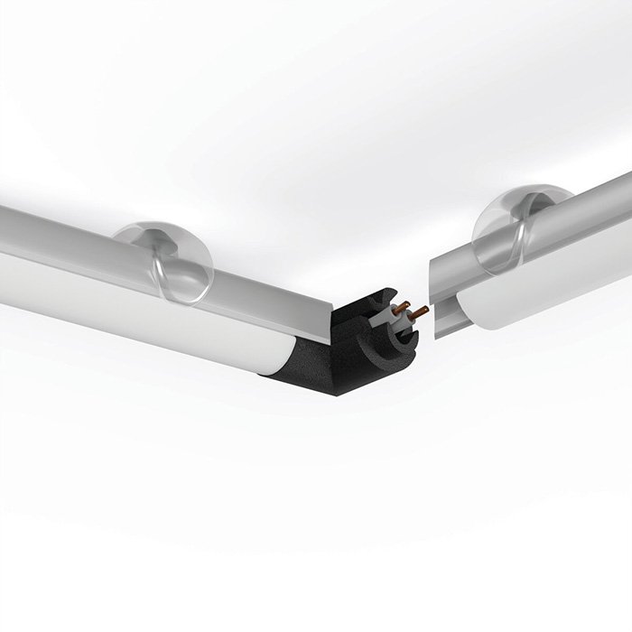 - Montáž koncovky formou vtlačenia do LED lišty.