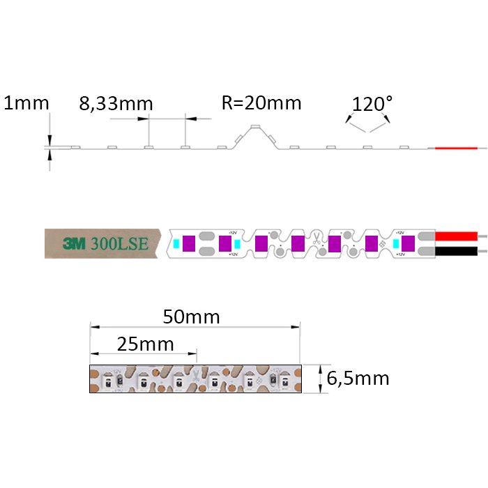 Doplňujúce technické vlastnosti pre fialový 12V Cik-Cak LED pásik SC12120E