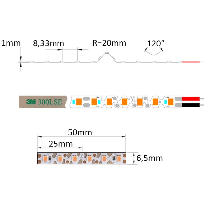 Doplňujúce technické vlastnosti pre oranžový 12V Cik-Cak LED pásik SC12120E