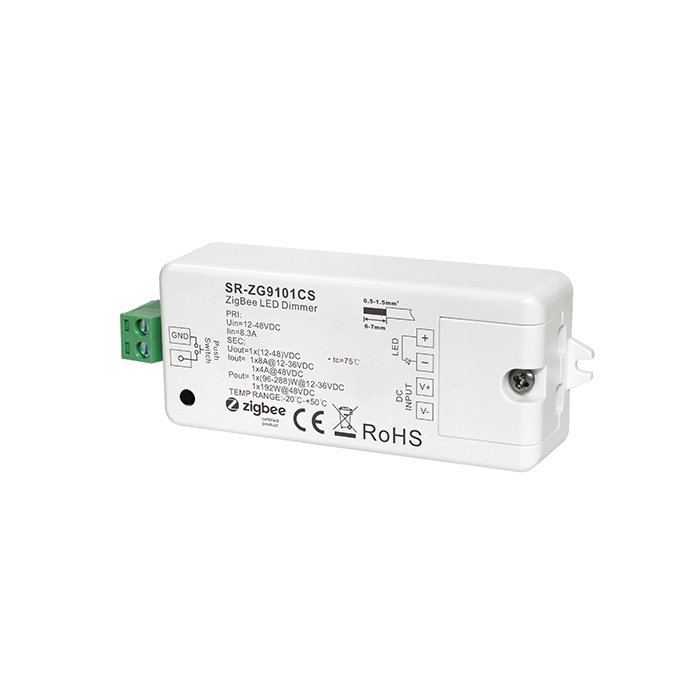 ZigBee stmievač s označením SR-ZG9101CS je ideálne riešenie pre moderné a efektívne riadenie osvetlenia jednofarebných LED pásikov pomocou ZigBee protokolu 3.0. Umožňuje pripojenie bežne dostupných tlačidlových vypínačov pomocou PUSH-DIM zbernice alebo integrácie do systému automatizácie budov pomocou ZigBeee protokolu za účelom precízneho a plynulého stmievania jednofarebných LED pásikov: